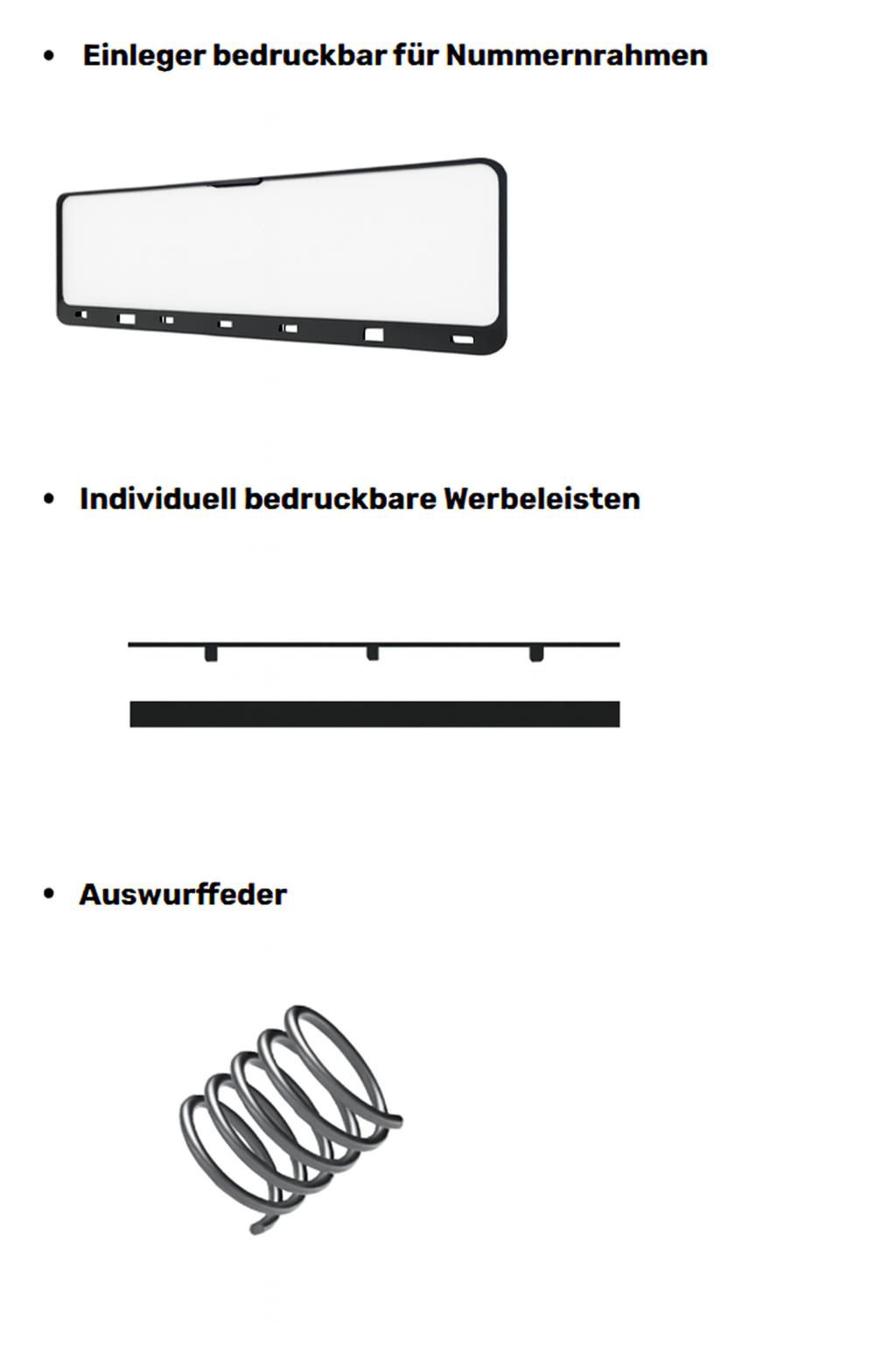 • Einfaches herausnehmen des Kennzeichens durch eine optionale Auswurffeder